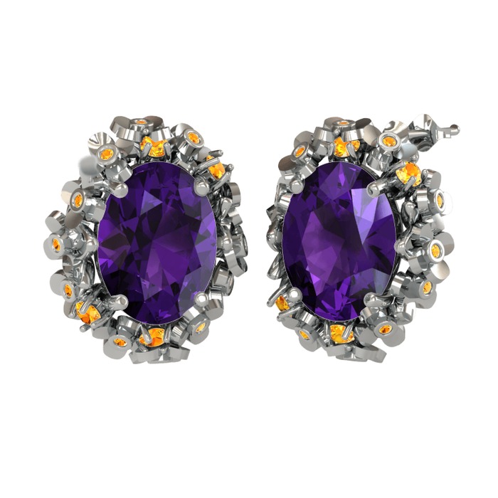 Ametist ve sitrin 14 ayar beyaz altın küpe