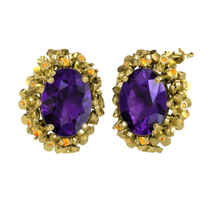Ametist ve sitrin 18 ayar altın küpe