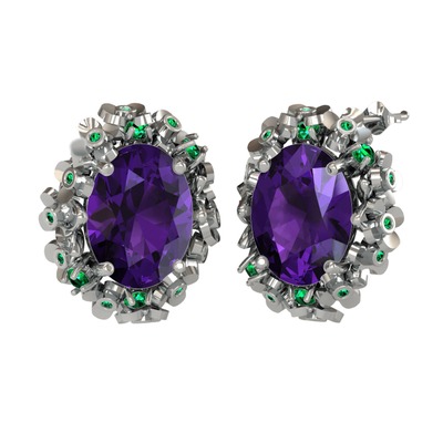 Ametist ve yeşil kuvars 14 ayar beyaz altın küpe