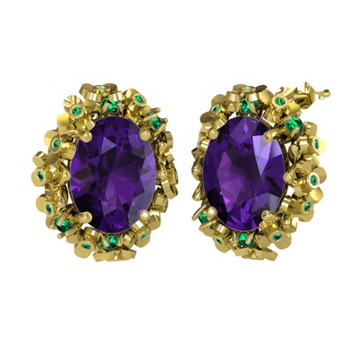 Ametist ve yeşil kuvars 8 ayar altın küpe