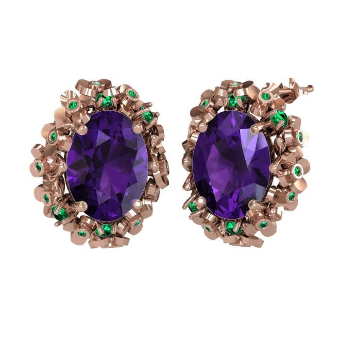 Ametist ve yeşil kuvars 8 ayar rose altın küpe