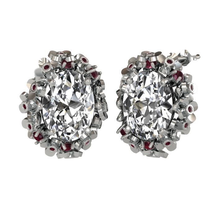 Beyaz zirkon ve kök yakut 14 ayar beyaz altın küpe