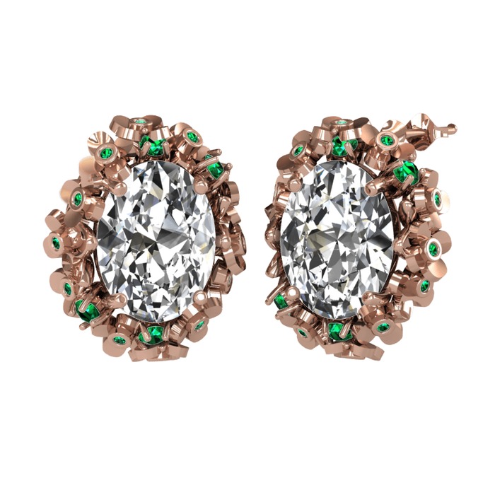 Beyaz zirkon ve yeşil kuvars 14 ayar rose altın küpe