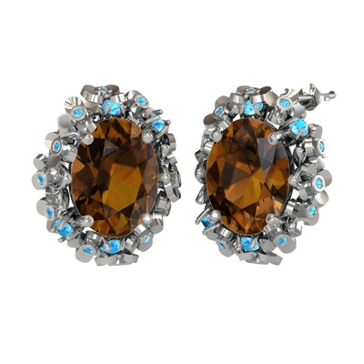 Dumanlı kuvars ve akuamarin 925 ayar gümüş küpe