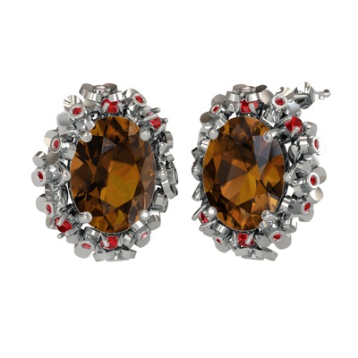 Dumanlı kuvars ve garnet 14 ayar beyaz altın küpe