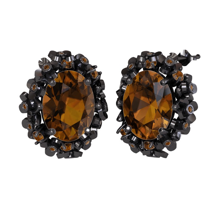 Dumanlı kuvars 925 ayar siyah rodyum kaplama gümüş küpe