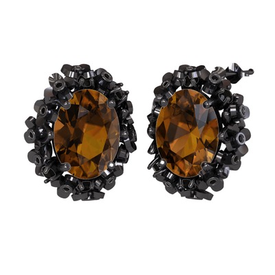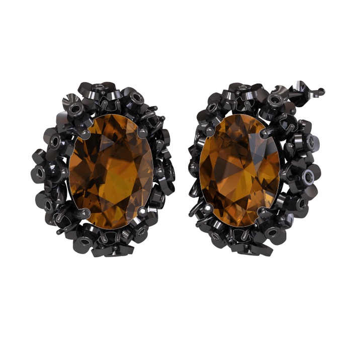 Dumanlı kuvars ve siyah zirkon 925 ayar siyah rodyum kaplama gümüş küpe