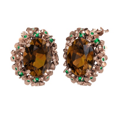 Dumanlı kuvars ve yeşil kuvars 14 ayar rose altın küpe