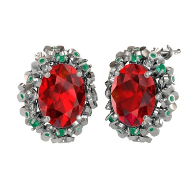 Garnet ve kök zümrüt 18 ayar beyaz altın küpe