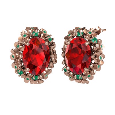 Garnet ve kök zümrüt 925 ayar rose altın kaplama gümüş küpe