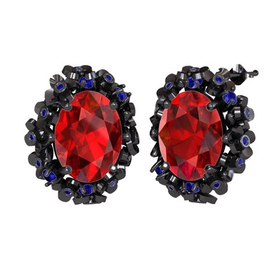 Garnet ve lab safir 925 ayar siyah rodyum kaplama gümüş küpe