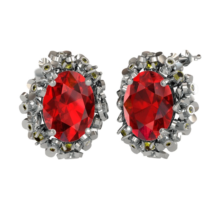 Garnet ve peridot 18 ayar beyaz altın küpe