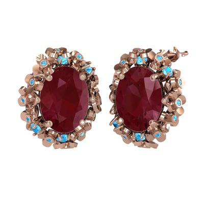 Kök yakut ve akuamarin 18 ayar rose altın küpe