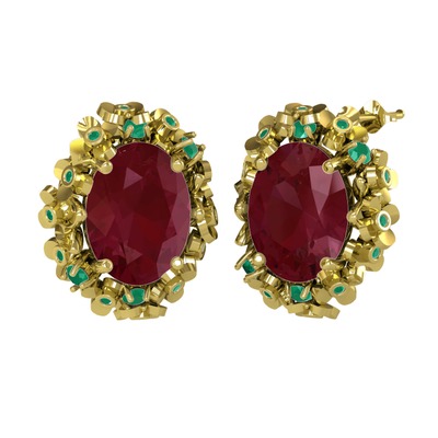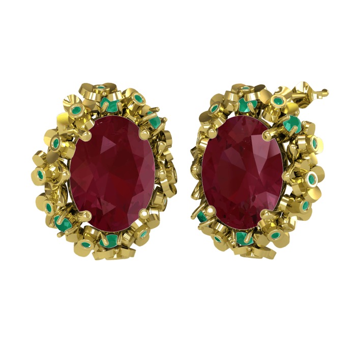 Kök yakut ve kök zümrüt 18 ayar altın küpe