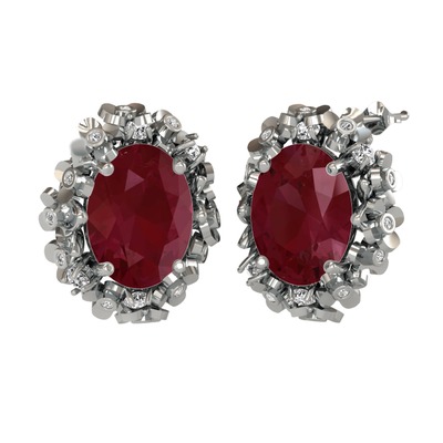 Kök yakut ve pırlanta 14 ayar beyaz altın küpe (0.36 karat)