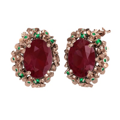 Kök yakut ve yeşil kuvars 14 ayar rose altın küpe