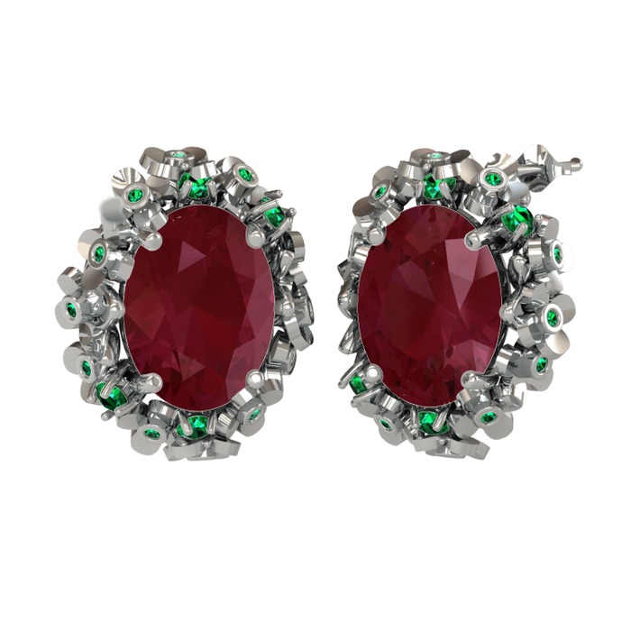 Kök yakut ve yeşil kuvars 8 ayar beyaz altın küpe