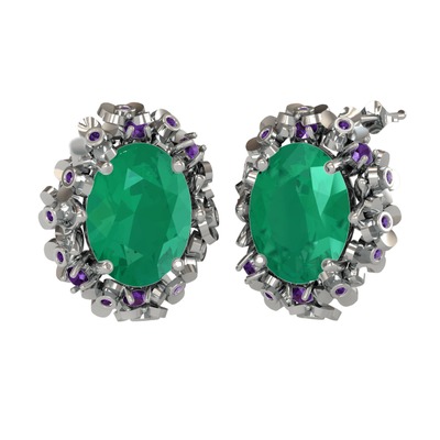 Kök zümrüt ve ametist 8 ayar beyaz altın küpe