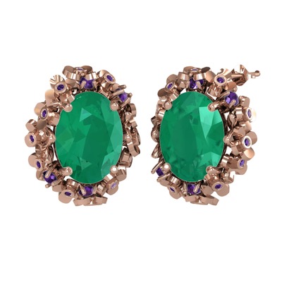 Kök zümrüt ve ametist 925 ayar rose altın kaplama gümüş küpe