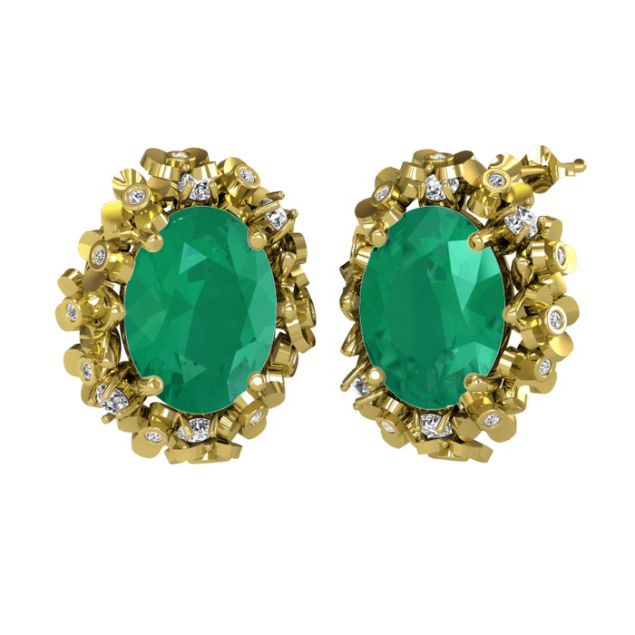 Kök zümrüt ve beyaz zirkon 14 ayar altın küpe