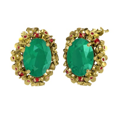 Kök zümrüt ve garnet 925 ayar altın kaplama gümüş küpe