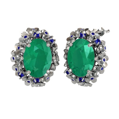 Kök zümrüt ve lab safir 18 ayar beyaz altın küpe