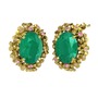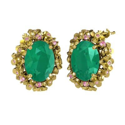 Kök zümrüt ve pembe kuvars 8 ayar altın küpe