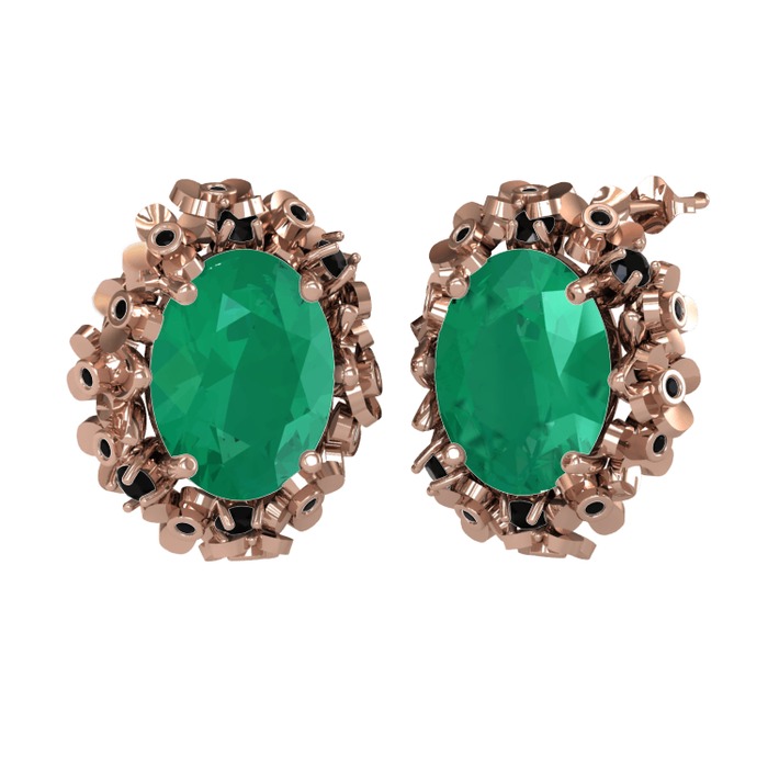 Kök zümrüt ve siyah zirkon 14 ayar rose altın küpe