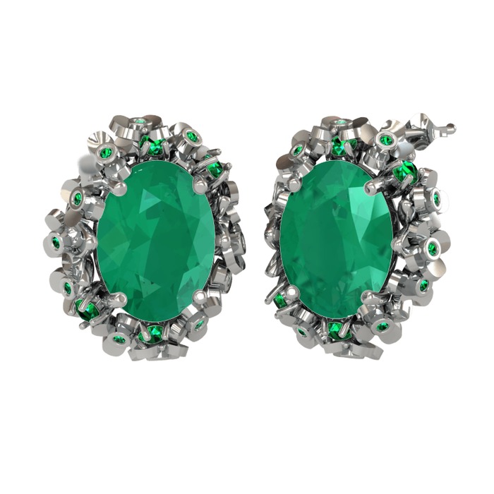 Kök zümrüt ve yeşil kuvars 8 ayar beyaz altın küpe