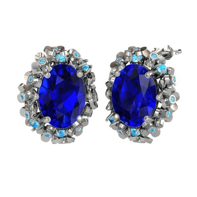 Lab safir ve akuamarin 925 ayar gümüş küpe