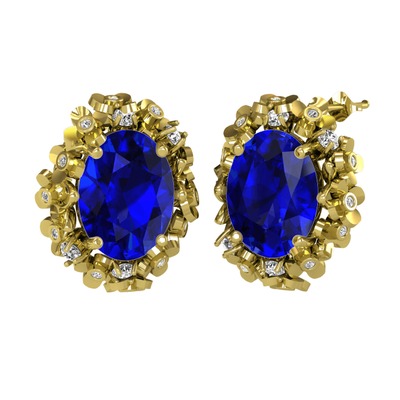 Lab safir ve beyaz zirkon 14 ayar altın küpe