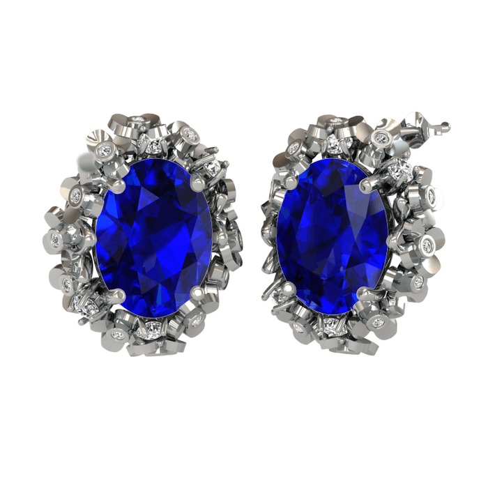 Lab safir ve beyaz zirkon 8 ayar beyaz altın küpe