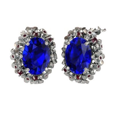 Lab safir ve kök yakut 18 ayar beyaz altın küpe