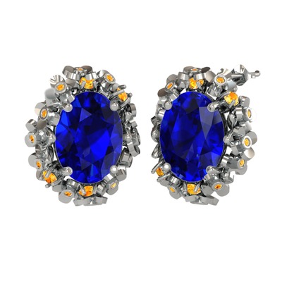 Lab safir ve sitrin 14 ayar beyaz altın küpe