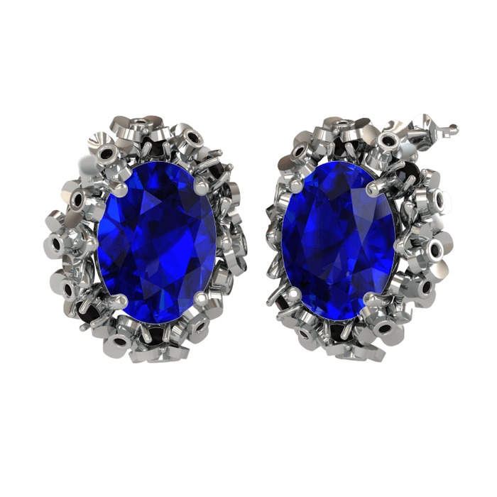 Lab safir ve siyah zirkon 8 ayar beyaz altın küpe