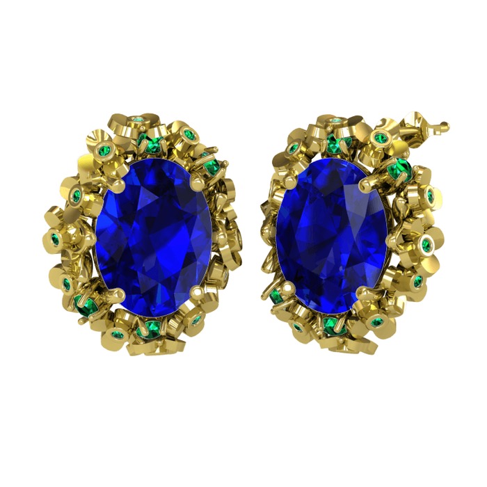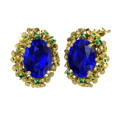 Lab safir ve yeşil kuvars 14 ayar altın küpe