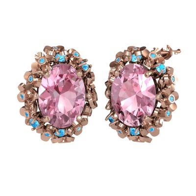 Pembe kuvars ve akuamarin 18 ayar rose altın küpe