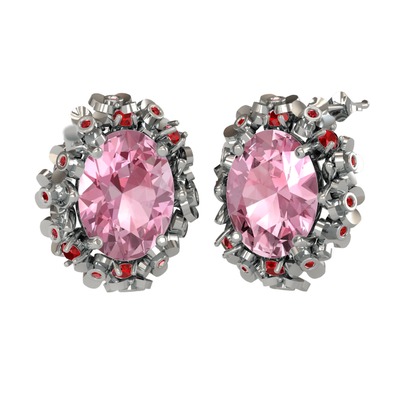 Pembe kuvars ve garnet 14 ayar beyaz altın küpe