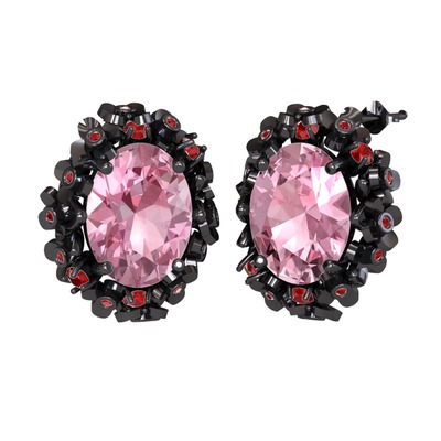 Pembe kuvars ve garnet 925 ayar siyah rodyum kaplama gümüş küpe