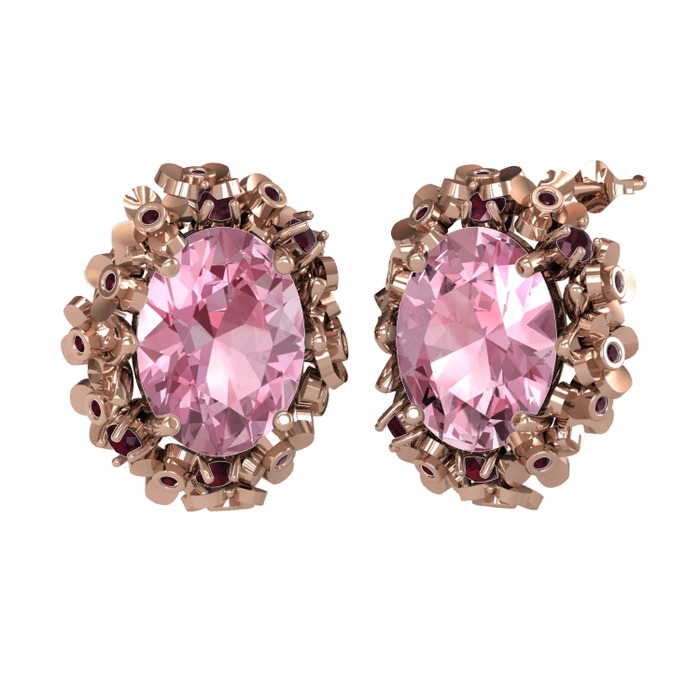 Pembe kuvars ve kök yakut 18 ayar rose altın küpe