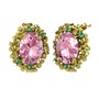 Pembe kuvars ve kök zümrüt 14 ayar altın küpe