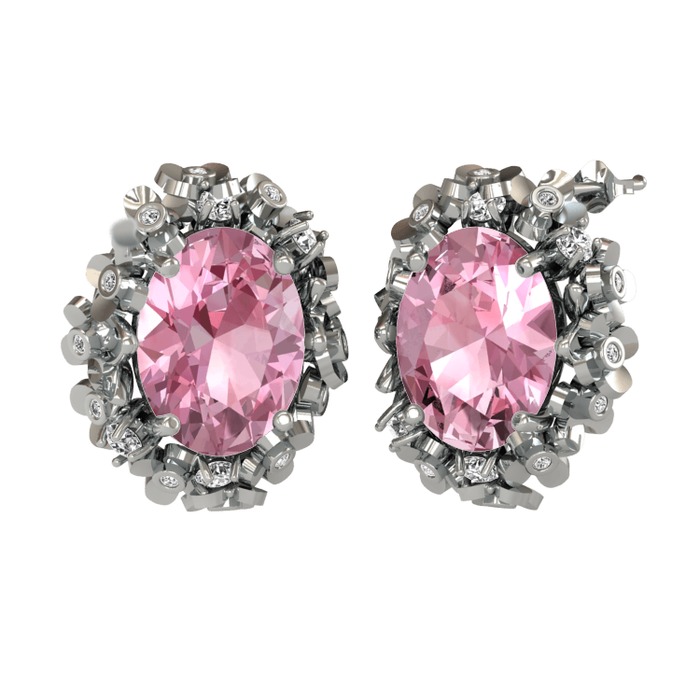 Pembe kuvars ve pırlanta 8 ayar beyaz altın küpe (0.36 karat)