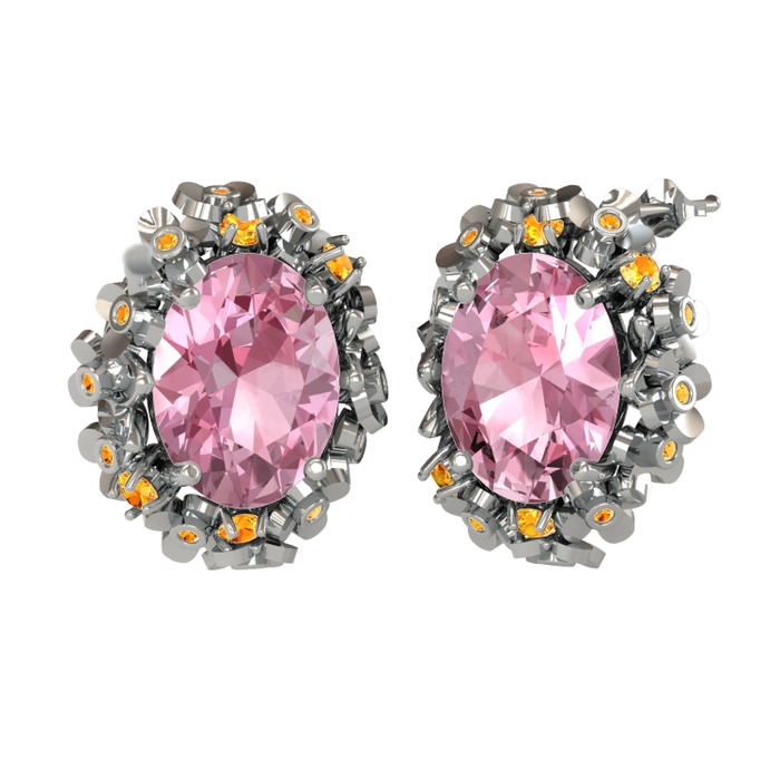 Pembe kuvars ve sitrin 14 ayar beyaz altın küpe