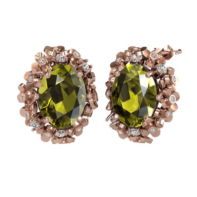 Peridot ve beyaz zirkon 14 ayar rose altın küpe
