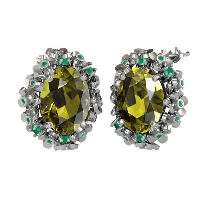 Peridot ve kök zümrüt 925 ayar gümüş küpe