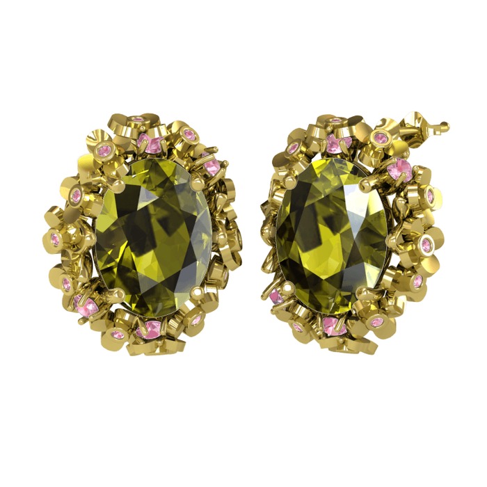 Peridot ve pembe kuvars 18 ayar altın küpe