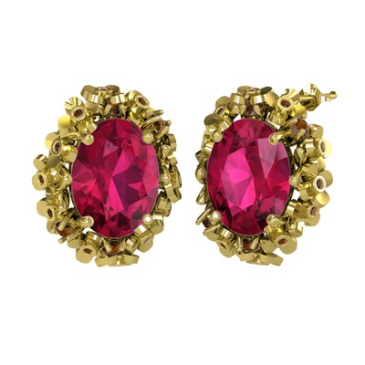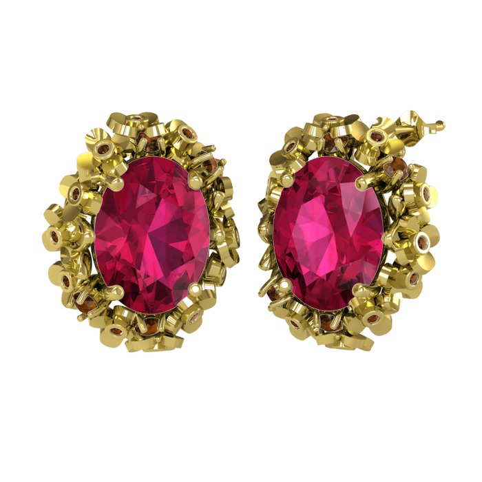 Rodolit garnet ve dumanlı kuvars 14 ayar altın küpe