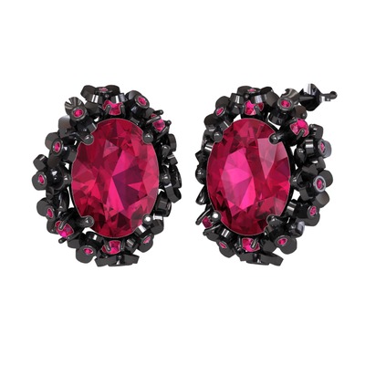 Rodolit garnet 925 ayar siyah rodyum kaplama gümüş küpe