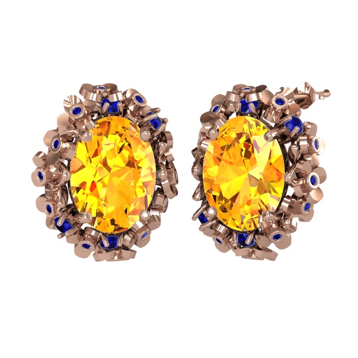 Sitrin ve lab safir 18 ayar rose altın küpe