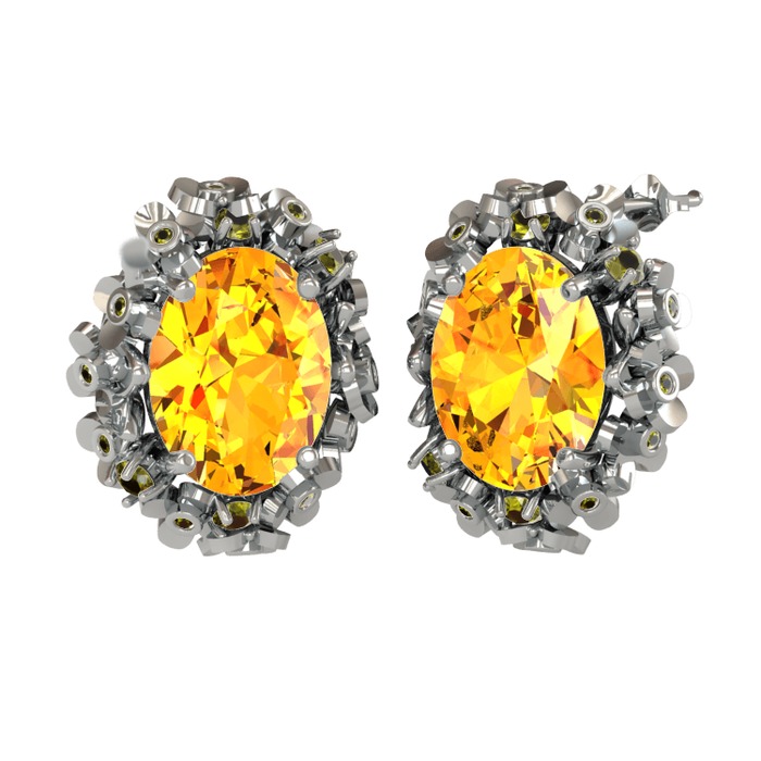 Sitrin ve peridot 14 ayar beyaz altın küpe